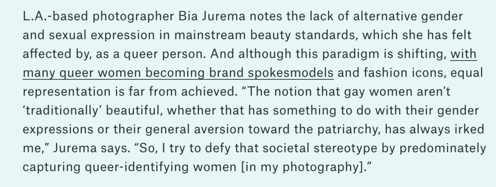 JUREMA WAS ONE OF THE FEATURED ARTISTS IN THE NYLON PIECE "HOW THESE PHOTOGRAPHERS ARE CHANGING WHAT IT MEANS TO BE BEAUTIFUL"